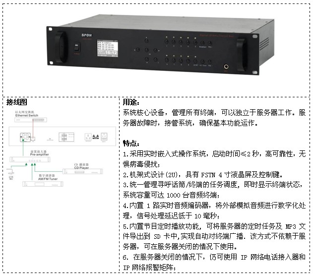 公共广播系统为工厂、宾馆、商厦、港口、机场、地铁、学校提供背景音乐和广播节目。近几年来,公共广播系统还兼做紧急广播,可与消防报警系统联动。