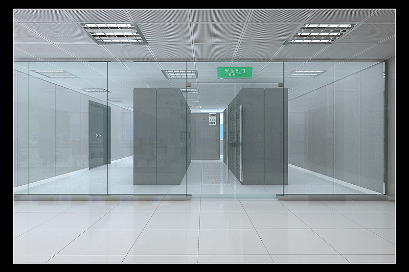 我们采用钢化玻璃隔断,不锈钢12厘墙体配12厘钢化玻璃,并加单开(或双开)玻璃门(12厘米玻璃),以分隔机房内的各个功能区,提高采光性能,使机房布局简洁明快、科学合理。