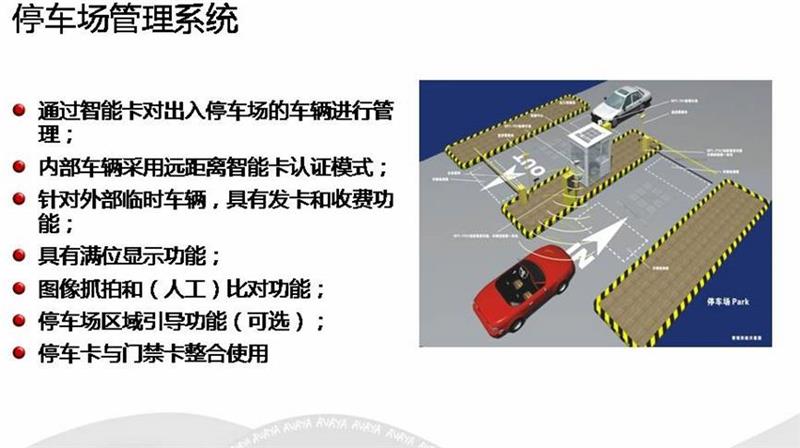 停车场管理系统是指基于现代化电子与信息技术,在停车区域的出入口处安装自动识别装置,通过非接触式卡或车牌识别来对出入此区域的车辆实施判断识别、准入/拒绝、引导、记录、收费、放行等智能管理,其目的是有效的控制车辆与人员的出入,记录所有详细资料并自动计算收费额度,实现对场内车辆与收费的安全管理。