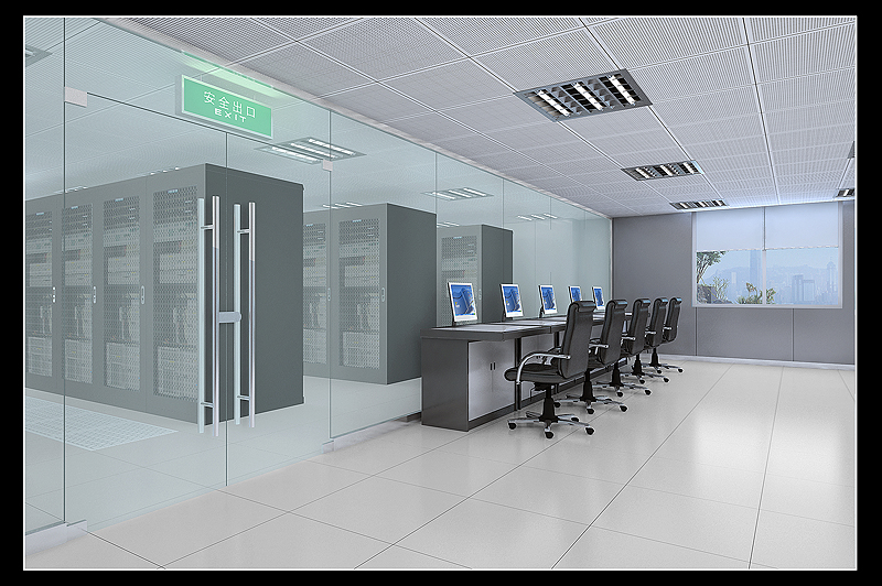 我们采用钢化玻璃隔断,不锈钢12厘墙体配12厘钢化玻璃,并加单开(或双开)玻璃门(12厘米玻璃),以分隔机房内的各个功能区,提高采光性能,使机房布局简洁明快、科学合理。